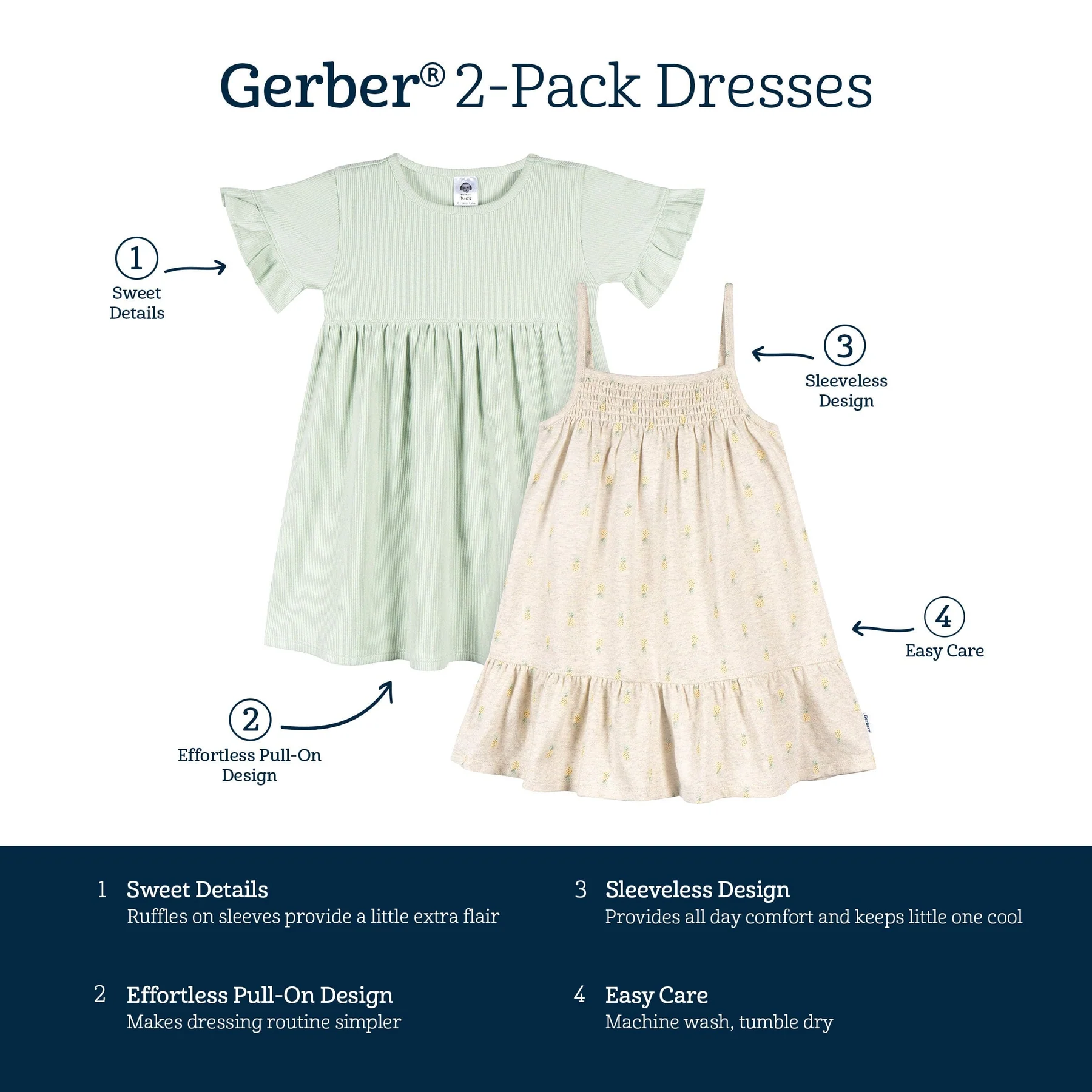 Gerber 2-Pack Toddler Girls Pineapple Dresses 2T